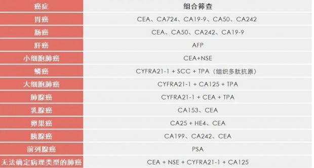 “肿瘤标志物”更适合高危人群的预防筛查和已经确诊为癌症的患者。临床上常采用组合筛查的方式: