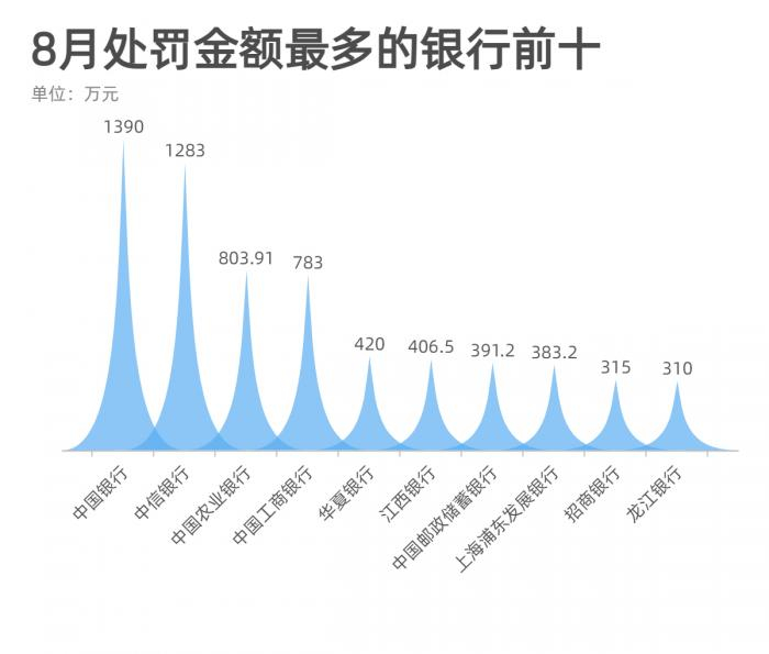 金融业8月罚款金额降40% 中行、中信银行被罚过千万