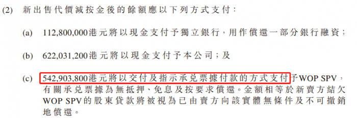 而交易支付上实际上也不完全能拿到现金,超过5亿港元为承兑票据。