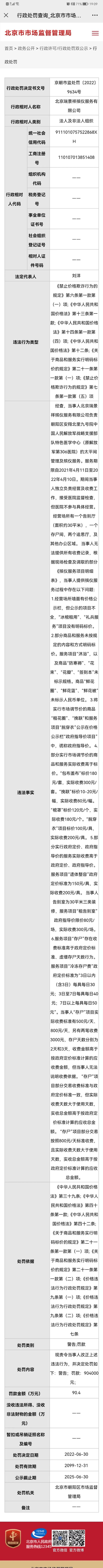 同样两个月接连被罚的,还有北京瑞景祥殡仪服务有限公司。2021年4月11日至2022年4月10日期间,该公司负责中国人民解放军战略支援部队特色医学中心(原解放军第306医院)的太平间管理及殡仪服务。现场检查发现,除了部分商品和服务的实际收费高于标价之外,该公司还存在“虚增存尸天数”行为,“存尸”的实际收费天数大于使用天数。6月30日,朝阳区市场监管局对其罚款90.4万元。此外,自2020年起,该公司还在北京肿瘤医院太平间开展殡仪服务。按该公司告别室的装修标准,原本租告别室收费限价应为200元/场,但实际却收取1000元/场的租告别室费用,违法所得共计人民币5600元。7月6日,海淀区市场监管局对其罚款2.8万元。
