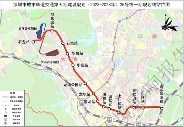 地铁25号一期线起自石龙站,终至吉华医院站,全线长约16.2公里,设站14座,全部为地下敷设。25号线一期为服务龙岗、龙华、宝安的轨道普线,覆盖沿线吉华、坂田、龙华中心等人口岗位密集区旺盛出行需求,支持坂雪岗科技城重点片区发展。