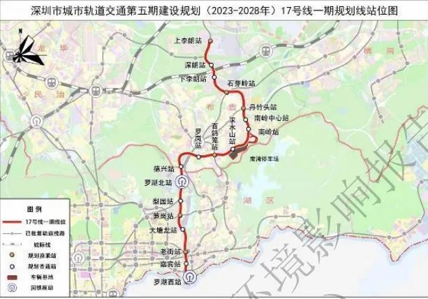地铁17号线一期由罗湖西至上李朗,设站18座,线路总长约18.8公里,全线采用地下敷设方式。17号线一期为服务罗湖、布吉、南湾等片区的普速线路,加强沿线人口岗位密集区的轨道覆盖,支持口岸经济带、笋岗清水河片区等重点片区发展,服务罗湖、罗湖北等铁路枢纽和深圳市第三人民医院等重点设施。