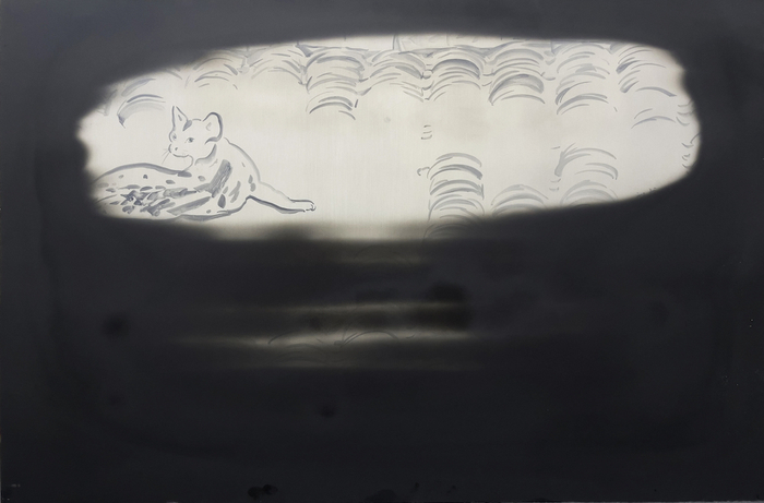 刘毅,《瓦猫》,金属板上油画(金属铝板、温控程序等综合材料),120×80×9.5cm,2021(显影变化)