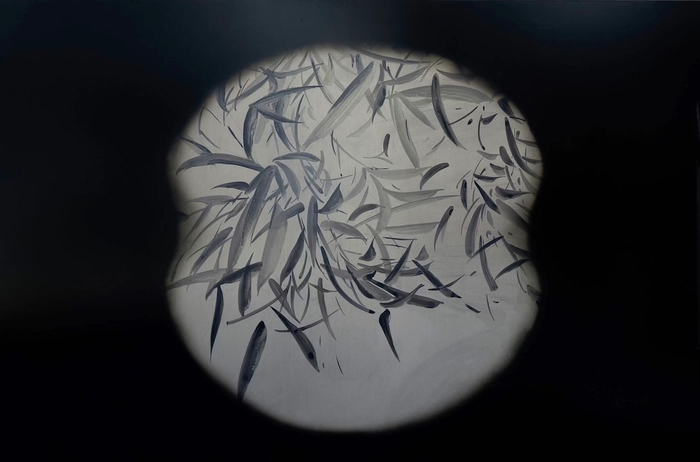刘毅,《新篁映月》,金属板上油画(金属铝板、温控程序等综合材料),120×80×9.5cm ,2021
