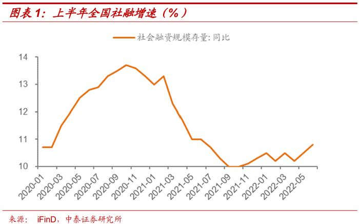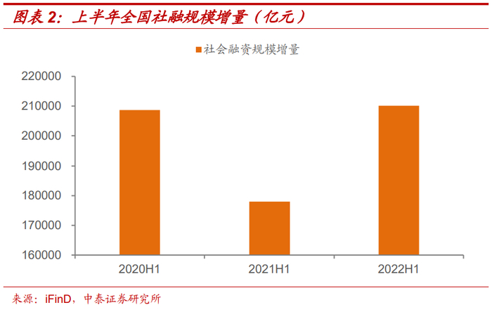 企业端表现相对弱势,对社融贡献相对较小。今年以来内外部风险加剧叠加疫情影响,企业端融资需求相对较差。债券融资规模虽然较2021年同期多增3968亿元,但是较2020年上半年仍有不小差距。非金融企业境内股票净融资5029亿,同比仅多增75亿元,企业端整体信贷压力仍然较大。
