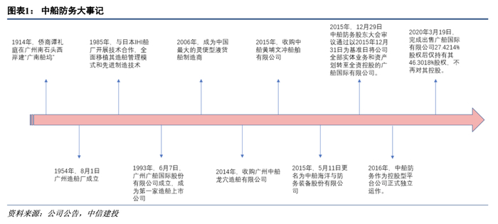 公司是集海洋防务装备、海洋运输装备、海洋开发装备和海洋科考装备四大海洋装备于一体的大型综合性海洋与防务装备企业集团。公司拥有黄埔文冲、广船国际两家主要子公司,业务涵盖防务装备、船舶修造、海洋工程、非船业务四大板块,主要产品包括军用舰船、特种辅船、公务船、油船、支线集装箱船、客滚船、半潜船、极地模块运输船、海洋平台等船舶海工产品以及钢结构、成套机电设备等非船产品。
