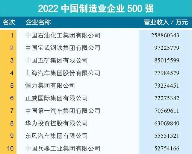 据了解,2022中国制造业企业500强营业收入达到47.11万亿元,同比增长17.07%,增速为2013年以来的最高值。资产总额达到47.65万亿元,增速为7.49%。入围门槛大幅跃升,达到147.78亿元,较上年增加36.87亿元,增幅达到33.26%,无论是绝对值还是增幅都创出历史新高。