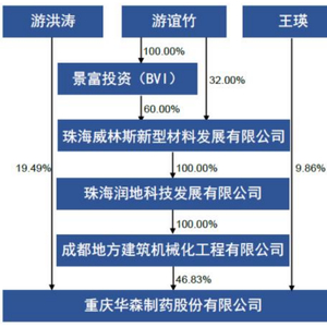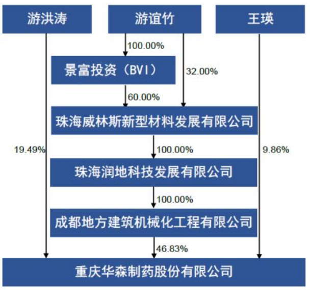 华森制药2021年年报显示,成都地方建筑机械化工程公司是由游谊竹100%持股。
