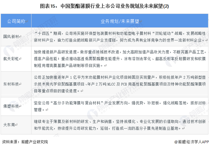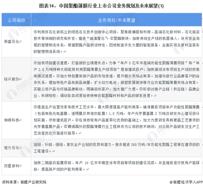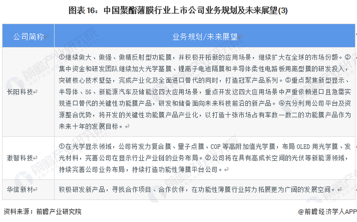 4、聚酯薄膜行业上市公司聚酯薄膜业务规划对比