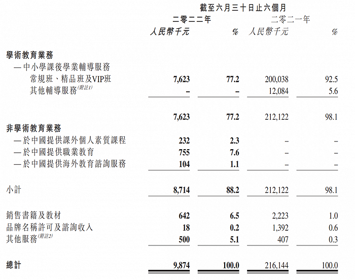 大山教育指出,报告期内其营收主要来自于学术教育业务自2022年1-3月的学费。较上年大幅度减少的原因主要是由于学术教育业务受政策限制,集团自2022年3月起关闭了旗下所有的学术教育业务的自营教学中心。