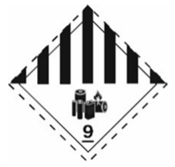 大型柜式锂电池储能系统包件上应粘贴No.9A标志(图5)、冠以“UN”的联合国编号3480和正确运输名称“锂离子电池组”,标记瓦特-小时功率。集装箱箱体的两侧和两端应分别粘贴No.9类标牌(图6)和联合国编号。