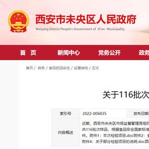 西安市未央区市场监督管理局发布116批次食品监督抽检情况