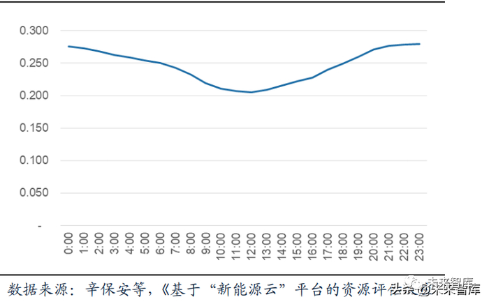 风电项目:初始投资下降 0.1 元/W,上网电价下降 0.01 元/kWh,消纳率下降 1pct,对资本金收益率分别影响+0.88pct、-1.26pct、-0.46pct。风电项目收益率对消纳率更加敏感,加之风电较光伏更难以消纳,若风电消纳 率出现明显下降,或将对新增装机产生较大影响。风电常常于后半夜大发,而此时 是全天用电负荷低谷,故消纳压力较大;光伏于正午大发,此时一般为全天用电负 荷高峰/次高峰,消纳压力相对较小。