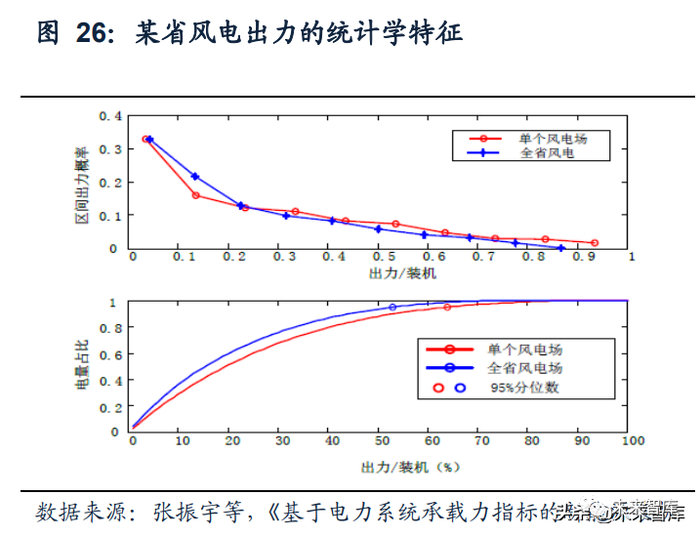 虽然随着新能源降本,在确保项目收益率不变的条件下,能够承载更低的消纳 率。即对应上述 A、C 点方程中更低的出力系数,更大的装机空间。但是根据第一 章分析,新能源难以承受消纳率大幅下降,假设消纳率要求从 95%下降至 90%,风电出力系数仅能够从 0.53(本文测算模型中仅取了 0.50)下 降至约 0.45,变化有限,对应装机空间的提升亦较为有限。