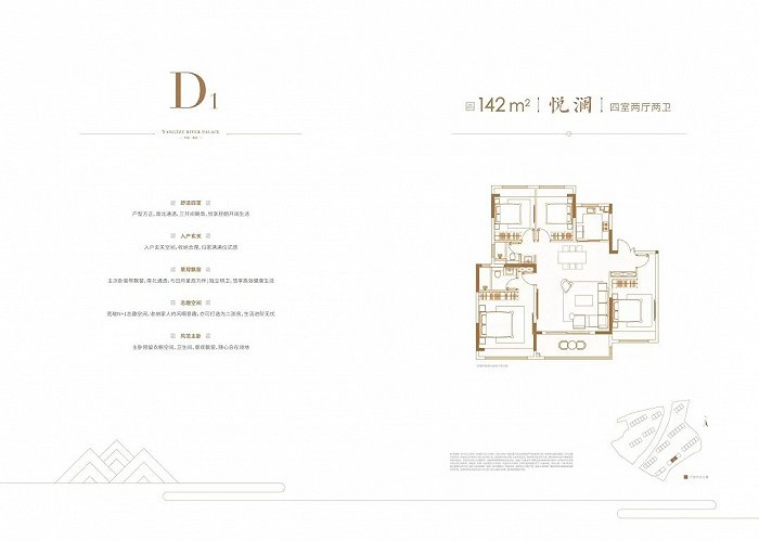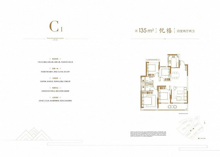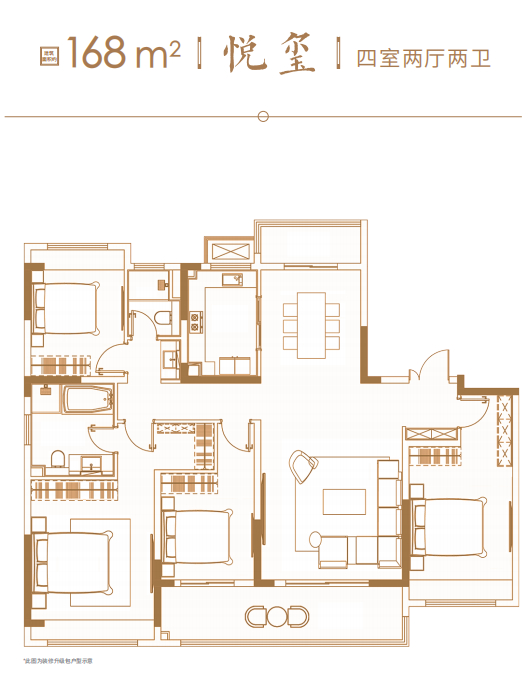建面约168㎡四房两厅两卫:3个卧室朝南,客餐厅一体化设计,超大阳台,保证了充足的采光和通风,主卧套房设计独立的衣帽间、卫生间带有浴缸。