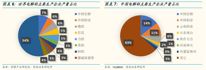 从中国电解铝主要生产企业产量占比情况来看,中国宏桥、中国铝业、云南铝业、山东南山、焦作万方位列前五。