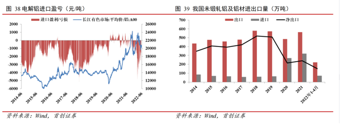 欧洲电解铝厂减产下,我国铝材出口增幅明显。今年1-4月我国未锻造的铝及铝材出口222.5万吨,同比增长29.17%,净出口151.7万吨,同比增长94.5%。首创证券吴轩在6月8日发布的研报中表示,海外新增产能有限。据SMM统计,2022年-2025年海外电解铝厂新增产能合计221.7万吨,2022年海外新增产能预计无法抵消减产产能。