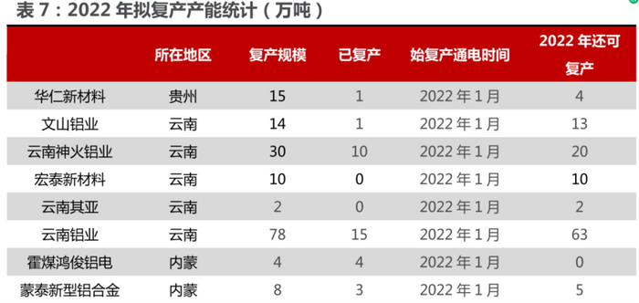 国金证券倪文祎预计22年我国电解铝产量可达3903万吨。民生证券邱祖学在1月27日发布的研报中表示,2022年电解铝已建成产能可投产187.5万吨,复产产能166.7万吨。