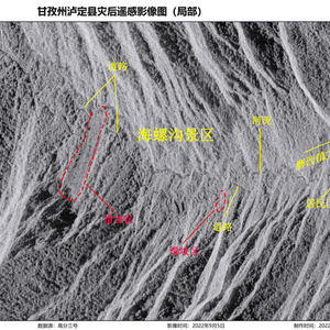 通过团队制成的上述遥感影像图,俞雷发现,海螺沟景区有多处山体滑坡,部分滑坡倾倒至河流,并已导致部分道路中断。“大型滑坡可能堵塞河道形成堰塞湖,堰塞湖溃决可能产生洪水灾害,威胁下游人民群众的生命财产安全。”俞雷说。