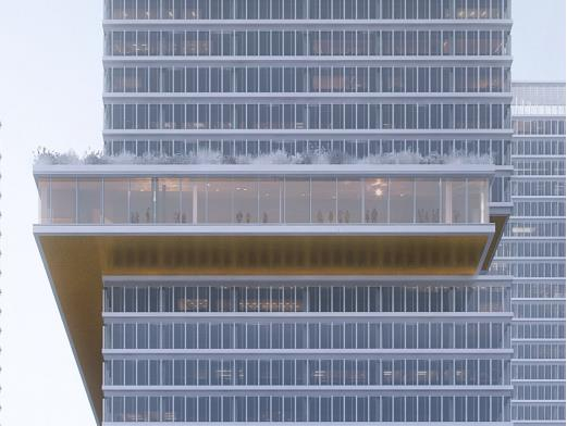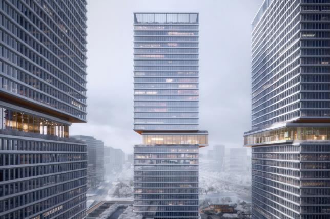 伟大的作品背后,离不开走在世界前端的设计者。据悉,保利浦开金融中心由全球知名设计事务所KPF整体设计,带着焕新浦东城市天际线的追求,设计团队打破办公塔楼均质的外立面刻板印象,采用“叠石”设计理念,于每栋塔楼80米高处打造滑错而出的移层无柱悬挑空间“凌空艺阁”,犹如“空中漂浮的玻璃盒子”闪耀于城市之上。同时,考虑项目与上海博物馆东馆相邻的文化属性,主造型上用一个“凸”出的外观呼应博物馆的“凹”洞造型,带来一个金融与文化、现代与历史和谐共生的视觉美感地标。