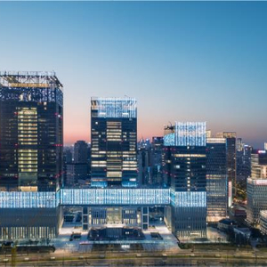 为持续焕新商务体验,项目与博物馆围合形成市民中央广场,打造开放共享的城市空间。通透的美术馆盒子、环形艺廊空间于高耸建筑串联,实现文化、艺术与国际商务的有效联动,构建沉浸式商务绿洲,为办公带来文化、艺术的人文享受。