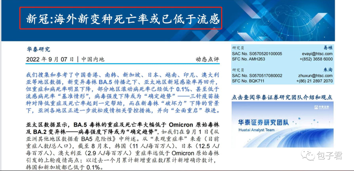 2、今天,华泰发了一篇研究报告,题目是“新冠:海外新变种死亡率或已低于流感”。你们可以看看...