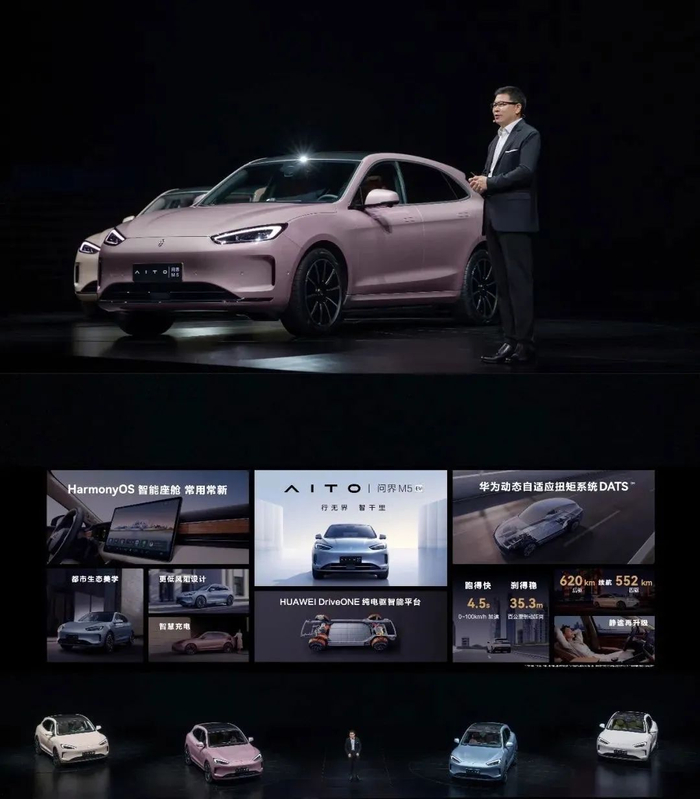 除了新的鸿蒙座舱,多款华为汽车产品也被搭载在新车上。余承东介绍,AITO问界M5 EV搭载了华为DriveONE纯电智能平台,零百加速最快4.5秒。同时,华为研发的动态自适应扭矩系统也首次搭载在新车上,该系统可以在颠簸路面动态识别路况,智能调整扭矩,大幅提升平顺性。