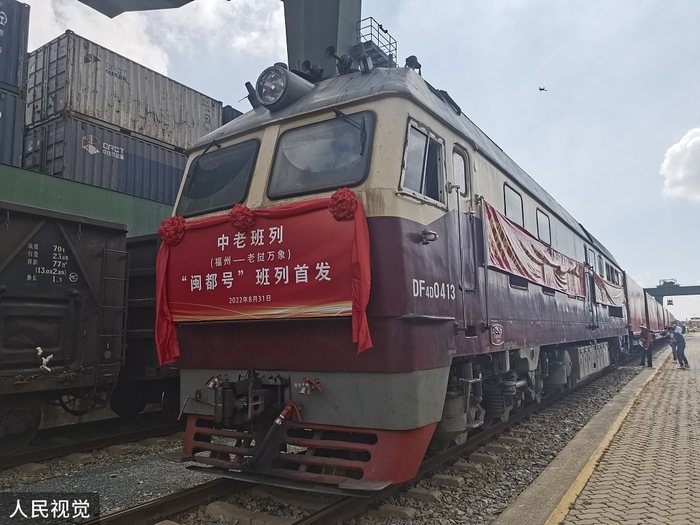 8月31日,福州,一列装载着507吨茶叶、农资产品的中老铁路国际货运列车,从江阴港站驶出,开往老挝万象,这标志着福建首趟中老铁路国际货运列车成功开行。(视觉中国)