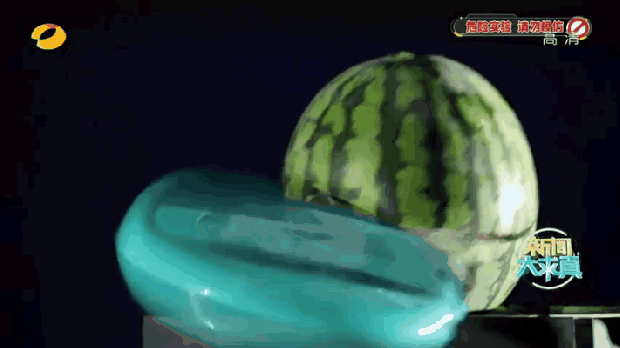 用西瓜来模拟人的头部西瓜也被瞬间打烂如果这是人脸可能牙都被打掉!