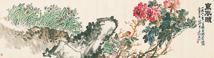 1922年9月,吴昌硕赠给诸乐三一首诗:“何药能医国,踌躇见性真。后天扶气脉,本草识君臣。鹤洛有源水,沪江无尽春。霜红寻到否,期尔一流人。”吴昌硕拿中医作比自己的得意门生,并非空穴来风,而是特有所指。因为除了艺术,诸乐三还有一个特殊身份——中医。他早年曾入读上海中医专门学校,行医问诊于中医院,从业时间长达23年。医者与艺者向来有很多共通之处,在诸乐三身上体现得颇为充分,可以归结为一个“仁”字。诸乐三长期浸润吴派艺术,传承创新,别赋一种浓郁的仁者风韵。1924年初夏,吴昌硕作《佛手水仙图》相赠,题曰:“仙假手,佛圆光。肱三折,肘一方。赤者剑,青者囊,饮且食兮寿而康。”又题:“乐三仁兄精通医理,写此赠之。甲子初夏,吴昌硕时年八十又一。”