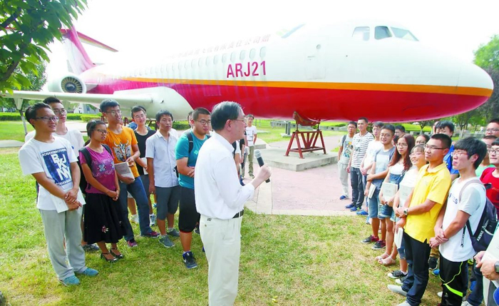 西北工业大学是我国从事航空、航天、航海工程教育和科学研究领域的重点大学,为我国“三航”事业培养了大批人才。图为我国支线飞机总设计师吴兴世在西工大新校区ARJ21-700零号试验机前,同学生分享科研和学习心得。(图片来源:视觉中国)