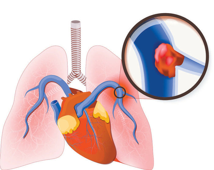肺栓塞与心肌梗死类似,都是由于血栓阻塞重要器官的血管,造成供血阻断,进而引发相应器官的梗死。肺栓塞的血栓常来源于下肢静脉。人体的静脉血最终要回流至心脏,然后由心脏负责把颜色暗红的静脉血泵入肺脏进行氧合,变成颜色鲜红的动脉血,再输送至全身。当血栓进入静脉后,在心脏的挤压下,血栓会顺着血流方向进入肺脏,若阻塞在肺部血管中就会导致肺梗死,引发一系列症状:轻则有胸闷气促、缺氧的表现,仿佛高原反应;重则突发晕厥,甚至死亡。