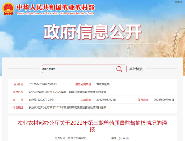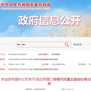 农业农村部办公厅通报2022年第三期兽药质量监督抽检情况