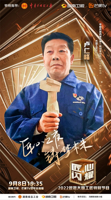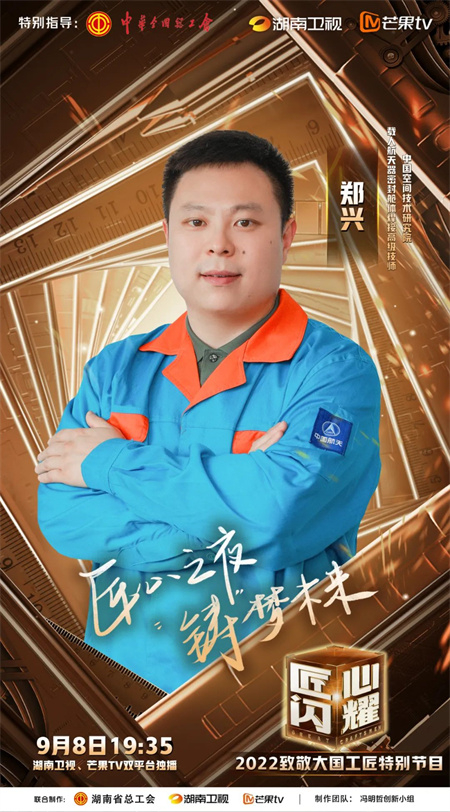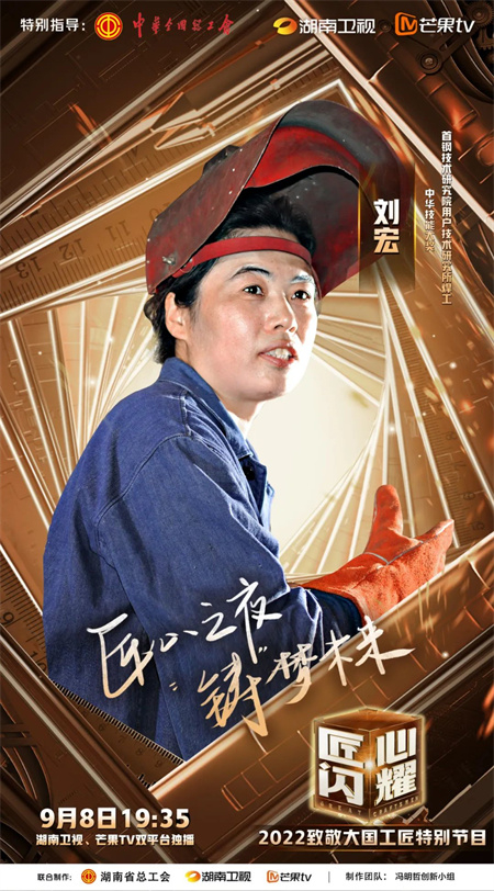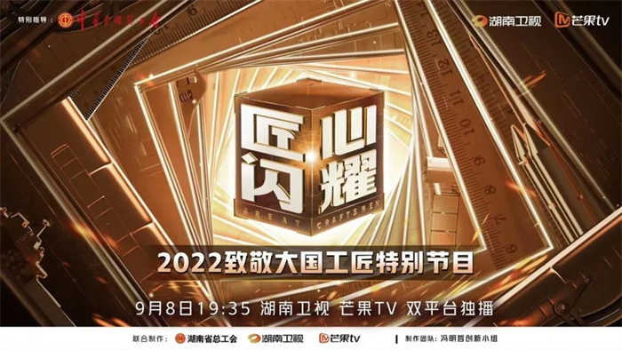 由中华全国总工会和中共湖南省委、湖南省人民政府主办、湖南省总工会、湖南卫视、芒果TV承办的《匠心闪耀——2022致敬大国工匠特别节目》,将于9月8日19:35在湖南卫视、芒果TV双平台独播。节目聚焦工匠面孔,讲述工匠故事,邀请各行各业各领域的工匠们齐聚一堂,情绪共振、情怀共享,见证、倾听彼此工作、生活中或振奋、或温情的珍贵时刻。