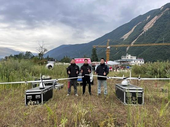 该救援小组出动了三支队伍,携带一架纵横大鹏通信基站无人机系统、一架监控无人机系统、一架测绘无人机系统,于9月6日凌晨1点到达泸定,与前线指挥部门讨论救援方案。