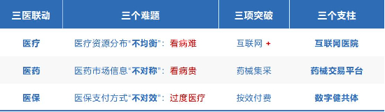 “以互联网医院为载体的在线问诊、远程医疗等,缓解了医疗资源分布不均衡的难题;由药械交易平台支撑的药械集中采购,破除了‘虚高’的药械价格;而数字健共体则响应和推进医保支付方式改革,将医疗健康服务转换到‘按效付费’的轨道上来。而天津市基层数字健共体成为微医融合互联网医院、药械交易平台和数字健共体三项创新,同时破解看病难、看病贵和过度医疗等医疗体系顽疾的综合解决方案。”