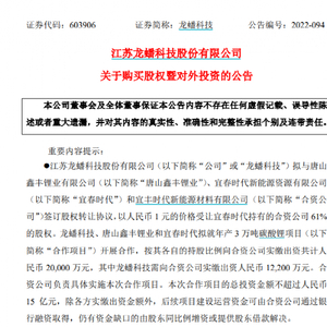 根据协议,龙蟠科技、唐山鑫丰锂业和宜春时代拟就年产3万吨碳酸锂项目开展合作,该项目将由合资公司宜丰时代负责具体实施。为此,龙蟠科技与唐山鑫丰锂业同意按照协议约定的条款与条件,受让宜春时代合计持有的合资公司71%的股权。