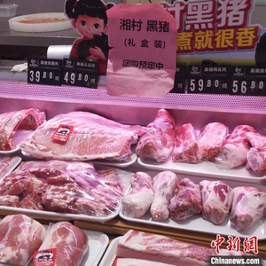 北京某永辉超市里售卖的黑猪肉。 中新财经记者 谢艺观 摄
