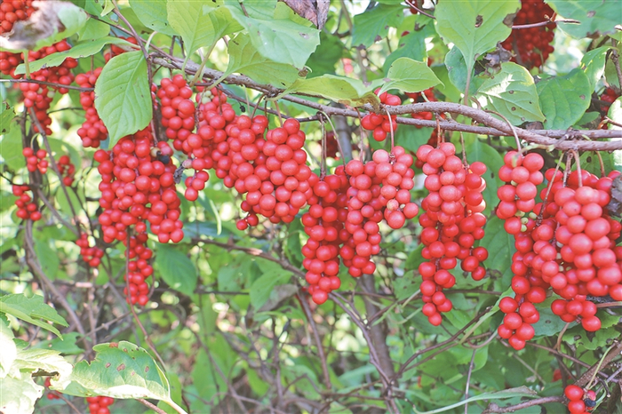 清河林业局有限公司现种植五味子面积5000多亩,盛果期预计鲜果总产可达500万斤,创造产值3000多万元。走进清河局各林场,家家户户房前屋后都是绿油油、红彤彤的,五味子长势喜人,如红玛瑙般的果实已从叶片间探出头来。“我们对五味子做无公害管理,种植全程不使用任何农药、化肥,纯天然晾晒,既能保证产量,又提高了质量。”清河局育林林场五味子种植户别立远掀开藤蔓上的树叶笑着说。