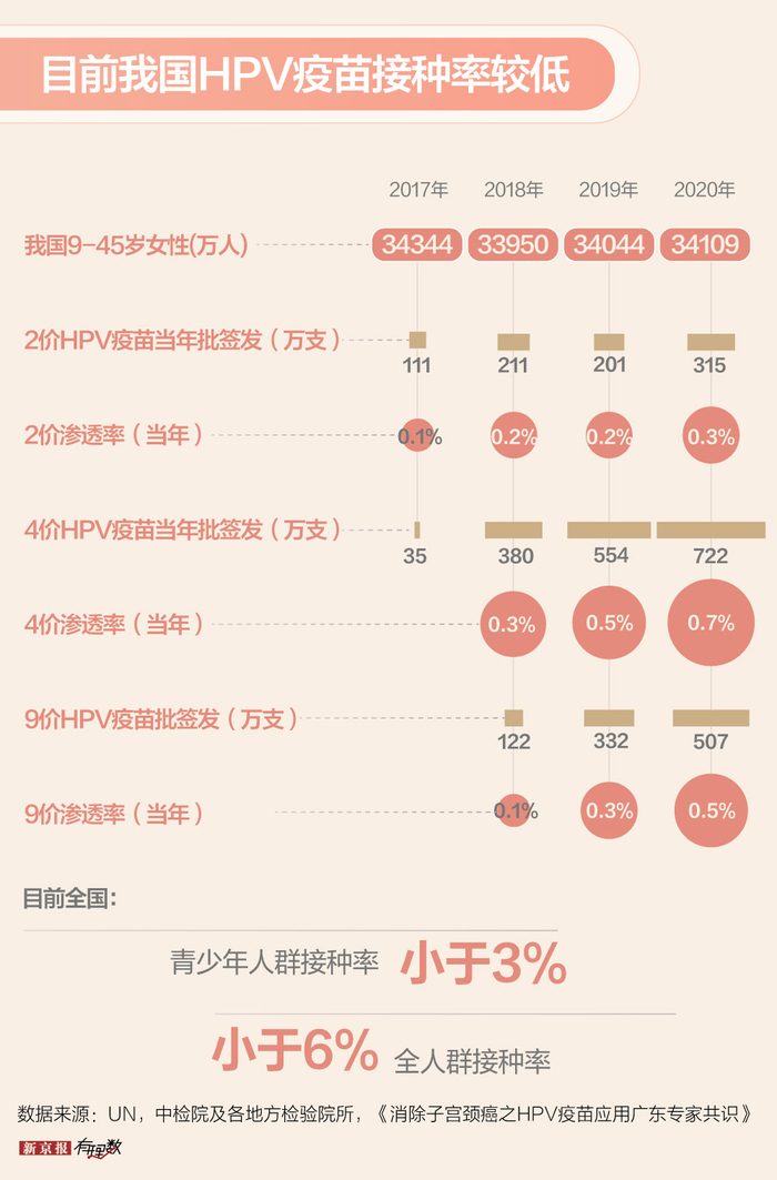 目前我国青少年人群接种率不到3%,全人群接种率不到6%,接种率低。