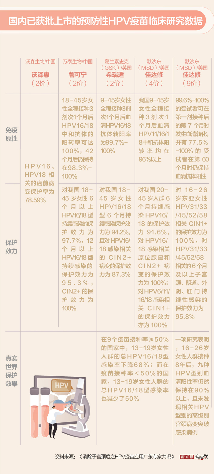 但现在,HPV九价疫苗有了我国的临床研究数据,发现9-15岁、27-45岁女性的免疫原性与16-26岁人群一致,也就是说有了相同的保护效果。于是基于这些研究效果,才能将适用年龄扩大至9-45岁。