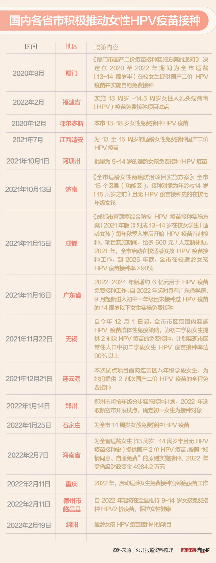 对此,我国政府鼓励符合条件的省份将 HPV 疫苗纳入公共接种范围,厦门、鄂尔多斯、济南和广东等多个城市和省份先行试点,开始为部分 15 周岁以下的女生免费接种HPV 疫苗。