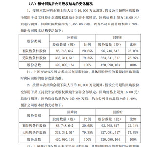 回购方案显示,按回购金额上限测算,预计回购股份数量约为1000.00万股,占公司目前总股本的2.38%。按回购金额下限测算,预计回购股份数量约为625.00万股,占公司目前总股本的1.49%。具体回购股份的数量以回购期满时实际回购的股份数量为准。回购股份的期限为公司董事会审议通过本次回购方案之日起不超过12个月。