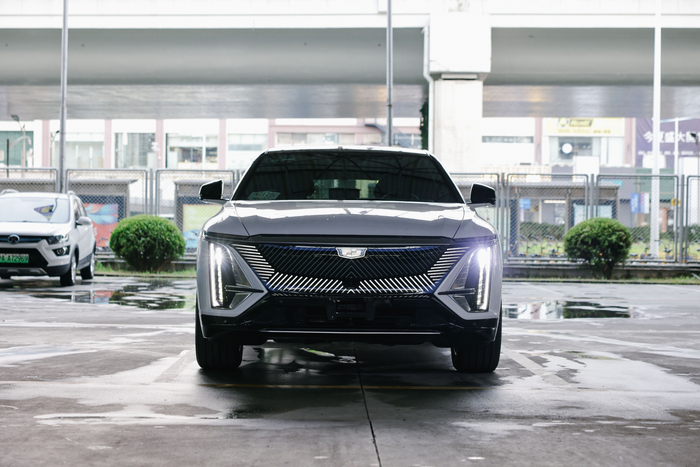 盾牌风格的标志性前脸,搭配大面积的黑晶光耀格栅,即使盖住发光的logo,仍然会让人第一眼就认出它是一台凯迪拉克。黑晶光耀格栅使封闭式前脸不再有光秃秃的感觉,格栅中的纹路则是58条LED灯带,当解锁车辆时,转向灯、中网灯带以及大灯会依次点亮,仪式感满满。