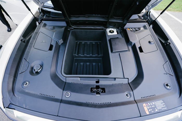 此次我们试驾的车型为单电机的后续长续航豪华版,由于仅有一个位于后轴的电机,因此前机舱拥有一个能够放下20英寸登机箱的前备厢,算是给整车的空间灵活性又加了一点分。不过,四驱版车型由于要在前轴放电机,就没有这个前备厢了。
