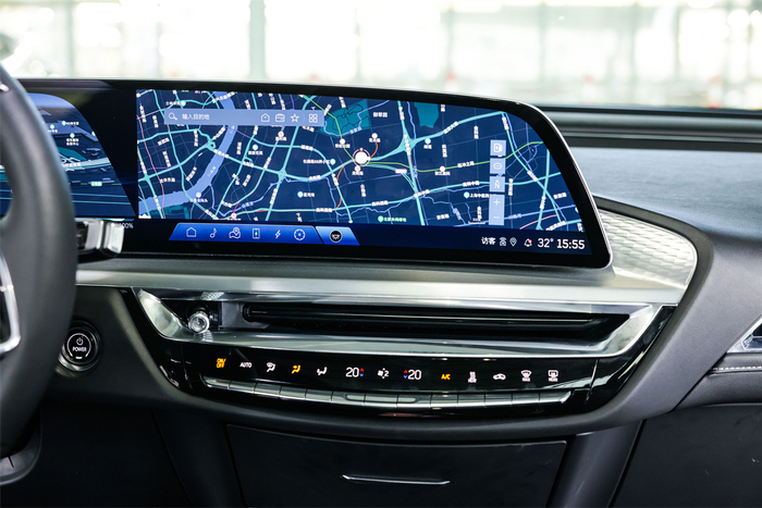 不过,这并不意味着LYRIQ锐歌拒绝顺应潮流,位于驾驶员前方和中控台上那块9K分辨率的33英寸曲面屏,就是内饰最吸引人的部分。不同于很多车型上的双联屏设计,LYRIQ锐歌搭载的是一块完整的屏幕,除了仪表盘位置不可触控,左右都能够通过触控进行操作,850尼特的最高亮度,100000:1的动态对比度,以及271ppi的像素密度,无论尺寸还是显示的细腻程度,这块屏幕都要远超当下大多数车机屏幕。