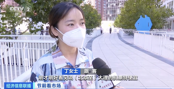 旅客 丁女士:准备回家,因为我是大理的。刚才刚好看见北京至大理的机票特便宜,国庆要5800,但是中秋只要1900,当场就订了机票。