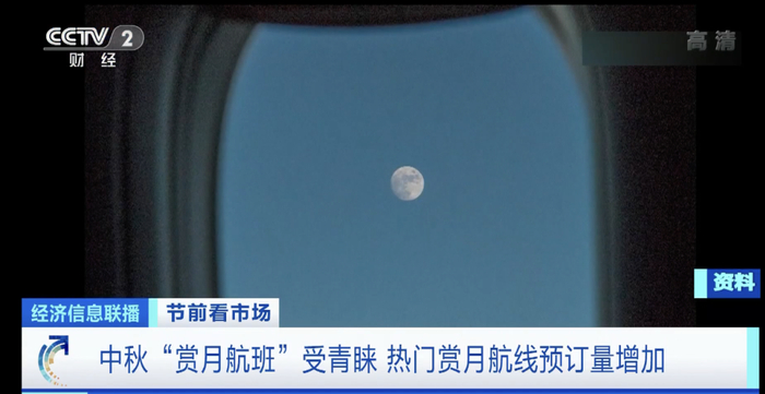 据央视财经报道,记者了解到,今年的中秋节月亮是标准的“十五的月亮十五圆”,多家航空公司推出了赏月航班,中秋节当天,全国计划执行的赏月航班为1607个。