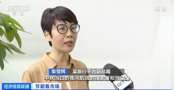 某旅行平台副总裁 柴莹辉:中秋当日夜间航班的搜索量和预订量都呈现出了双位数的增长。