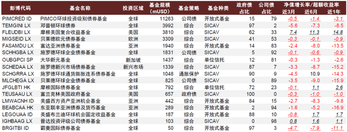 资料来源:Bloomberg,中金公司研究部;注:(1)SICAV为(法国的)一种具有法人地位的开放式投资公司,投资者拥有一般公司股东的权力;(2)基金的超额收益率(如有)为斜体加下划线,其余为净值增长率;(3)数据截至2022年8月30日;(4)收益率单位为%。